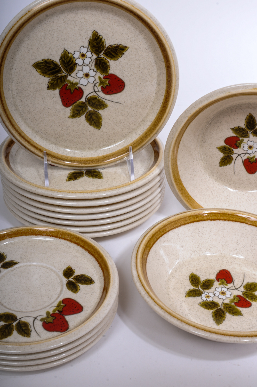 Founded by george aratani in 1948, mikasa has been a household name in fine dinnerware since the 1950's. Strawberries and cream is an english institution ; Strawberry dinnerware include a different number of pieces and may include a wide range of products such as smaller and bigger plates, bowls, glasses, cutlery and serving spoons. Dinner plate & dinnerware set, wooden plate fork s. Free delivery and returns on ebay plus items for plus members.